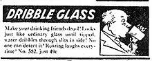 A dribble glass is a drinking glass that has holes hidden in its etched design.[1]