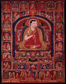 Like with all other Kagyu lineages, origins of Drikung Kagyu can be traced back to the Great Indian Master Tilopa who passed on his teachings to Mahasiddha Naropa who lived around 10th and 11th century. The founder of the Drikung Kagyu lineage was Jigten Sumgön (1143-1217) of the Kyura clan,[1] who was the disciple of Phagmo Drupa. According to historical account from the time, Jigten Sumgön's teachings attracted more than 100,000 people at a time, with the highest number of attendance recorded at 130,000.[2]
