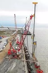 Small mobile drilling rigs are also used to drill or bore piles. Rigs can range from 100 short tons (91,000 kg) continuous flight auger (CFA) rigs to small air powered rigs used to drill holes in quarries, etc. These rigs use the same technology and equipment as the oil drilling rigs, just on a smaller scale.