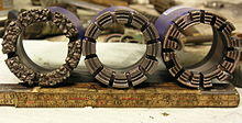 Until internal combustion engines were developed in the late 19th century, the main method for drilling rock was muscle power of man or animal. The technique of oil drilling through percussion or rotary drilling has its origins dating back to the ancient Chinese Han Dynasty in 100 BC, where percussion drilling was used to extract natural gas in the Sichuan province.[1] Early oil and gas drilling methods were seemingly primitive as it required several technical skills.[1][2] The skills involved the availability of heavy iron bits and long bamboo poles, the manufacturing of long and sturdy cables woven from bamboo fiber, and levers. Heavy iron bits were attached to long bamboo cables suspended from bamboo derricks and then were repeatedly raised and dropped into a manually dug hole by having two to six men jumping on a lever.[1] Han dynasty oil wells made by percussion drilling was effective but only reached 10 meters deep and 100 meters by the 10th century.[1] By the 16th century, the Chinese were exploring and drilling oil wells more than 2000 feet deep.[2] A modernized variant of the ancient Chinese drilling technique was used by American businessman Edwin Drake to drill Pennsylvania's first oil well in 1859 using small steam engines to power the drilling process rather than by human muscle.[1]