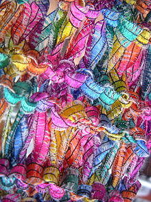 Drop-stitch knitting is a knitting technique for producing open, vertical stripes in a garment. The basic idea is to knit a solid fabric, then (deliberately) drop one or more stitches (i.e., draw a loop out from the loop below it, and so on repeatedly), producing a run (or ladder) in the fabric. The run will continue to the bottom (i.e., cast-on) edge of the garment, or until it encounters an increase, at which it stops.