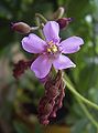 Drosera aliciae, the Alice sundew, is a carnivorous plant in the family Droseraceae. It is native to the Cape Provinces of South Africa,[1] like Drosera capensis, the cape sundew, and is one of the most common sundews in cultivation. The plant forms small, tight rosettes of wedge-shaped leaves, up to 5 cm in diameter. Under conditions of good lighting, the insect-snagging tentacles will become deeply coloured with anthocyanin pigments, which probably aid in its attraction of insect prey. The plant is relatively easy to grow, and produces attractive scapes of pink flowers, which are held about 30 cm away from the carnivorous leaves, so as to prevent pollinators from becoming ensnared. D. aliciae is very similar in form to a number of other closely related species such as D. slackii, and D. dielsiana: the former is rather larger (8 cm diameter); the latter rather smaller (3 cm diameter).