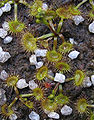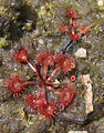 Tuberous sundews are species of the genus Drosera that have evolved to live in summer drought conditions and aestivate as a dormant underground tuber. While many tuberous sundews are ground-hugging rosettes, D. peltata is an upright species with a simple or branching inflorescence.[6]
