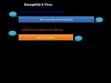 - ^ a b c d e f g h i j k l m n o p Chung, H. K.; Kordyban, S; Cameron, L; Dobos, P (1996). "Sequence analysis of the bicistronic Drosophila X virus genome segment a and its encoded polypeptides". Virology. 225 (2): 359–68. doi:10.1006/viro.1996.0610. PMID 8918922.