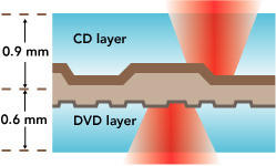Because the 0.9 mm thickness of the DualDisc CD layer did not conform to Red Book CD Specifications, which called for a layer no less than 1.1 mm thick, some CD players could not play the CD side of a DualDisc due to a phenomenon called spherical aberration. As a result, the laser reading the CD side might get a "blurry" picture of the data on the disc — the equivalent of a human reading a book with glasses of the wrong strength. Engineers tried to get around this by making the pits in the CD layer larger than on a conventional CD. This makes the CD side easier for the laser to read — equivalent to a book using bigger print to make it easier to see, even if the person's glasses are of the wrong strength. The downside to this, however, is that the playing time for the CD layer of some early DualDiscs decreased from the standard 74 minutes of a conventional CD to around 60 minutes, although this early limitation was later overcome.