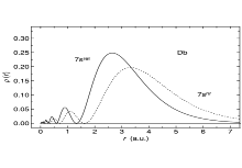 A direct relativistic effect is that as the atomic numbers of elements increase, the innermost electrons begin to revolve faster around the nucleus as a result of an increase of electromagnetic attraction between an electron and a nucleus. Similar effects have been found for the outermost s orbitals (and p1/2 ones, though in dubnium they are not occupied): for example, the 7s orbital contracts by 25% in size and is stabilized by 2.6 eV.[3]