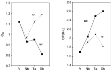 - ^ Relativistic effects arise when an object moves at velocities comparable to the speed of light; in heavy atoms, the quickly moving objects are electrons.