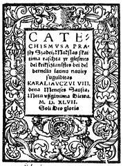 In 1544 Duke Albert founded the Albertina University in Königsberg, which became the principal educational establishment for Lutheran pastors and theologians of Prussia.[6] In 1560, the university received a royal privilege from King Sigismund II Augustus of Poland. It was granted the same rights and autonomy those enjoyed by the Kraków University, thus it became one of the leading universities in the Polish–Lithuanian Commonwealth. The use of the native languages in church services made Duke Albert appoint exiled protestant Lithuanian pastors as professors, e.g. Stanislovas Rapolionis and Abraomas Kulvietis, making the Albertina also a centre of Lithuanian language and literature.[11]
