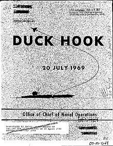 US government documents later declassified reveal that nuclear weapons were considered for Operation Duck Hook.[2] An attachment to a memo from US National Security Advisor Henry Kissinger to Nixon asked, "Should we be prepared to use nuclear weapons?" The memo warned that "Since we cannot confidently predict the exact point at which Hanoi could be likely to respond positively, we must be prepared to play out whatever string necessary." Kissinger's memo also stated that "To achieve its full effect on Hanoi's thinking, the action must be brutal." [emphasis in original]