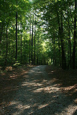 Duke Forest is a forest managed by Duke University for research, teaching, and recreation. It is located in the edge of the Piedmont (United States) in Durham County, Orange County, and Alamance County in North Carolina. Four of its six divisions lie within the triangle formed by Durham, Chapel Hill, and Hillsborough.