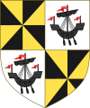 ![]() Quarterly, 1st & 4th: Gyronny of eight or and sable (Campbell); 2nd & 3rd: Argent, a lymphad or ancient galley sails furled flags and pennants flying gules and oars in action sable (Lorne).[1] | |