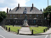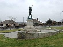 The regimental war memorial was erected here in 1924; it was the work of Leonard Stanford Merrifield and was in the form of atatue on pedestal and steps made from bronze and granite; it has been listed Grade II*.[31]