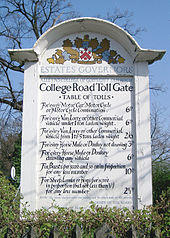 Dulwich sits astride the South Circular (A205), one of London's Ring Roads. Also passing through the area is the A2199 and College Road, which features a working tollgate dating back to 1789.