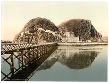 Dumbarton Castle (Scottish Gaelic: Dùn Breatainn, pronounced [t̪unˈpɾʲɛʰt̪ɪɲ]) has the longest recorded history of any stronghold in Scotland. It overlooks the Scottish town of Dumbarton, and sits on a plug of volcanic basalt known as Dumbarton Rock which is 240 feet (73 m) high.