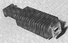 The dummy load ordinarily should be a pure resistance; the amount of resistance should be the same as the impedance of the antenna or transmission line that is used with the transmitter (usually 50 Ω or 75 Ω).[2] The radio energy that is absorbed by the dummy load is converted to heat. A dummy load must be chosen or designed to tolerate the amount of power that can be delivered by the transmitter.[3] Typically it consists of a resistor attached to some type of heat sink to dissipate the power from the transmitter.