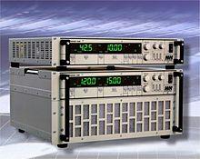 Electronic loads are used in diverse applications, particularly for the test of power supplies, batteries, solar and fuel cells, generators. AC loads are used to test transformers, uninterruptible power supplies (UPS) or onboard power supplies. The equipment and power spectrum of such electronic loads begins with simplest circuits consisting in general of a potentiometer for current setting and a transistor circuit for power transforming. Further developed electronic loads supply several operating modes, in most cases constant current, voltage, power and resistance. Nowadays, the equipment may be controlled by a PLC or remotely by a PC. Settings and measured values such as input voltage and actual load current are indicated on a display.