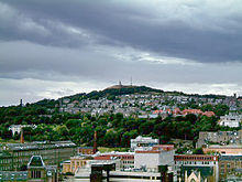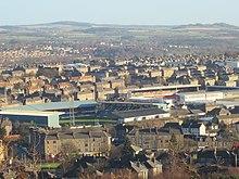 Modernisation of the city centre continued in the post-war period. The medieval Overgate was demolished in the early 1960s to make way for a shopping centre, followed by construction of the inner ring road and the Wellgate Shopping Centre.[77] The Tay Road Bridge, completed in 1966 had as its northern landfall the docklands of central Dundee, and the new associated road system resulted in the city centre being cut off from the river.[78] An acute shortage of housing in the late 1940s was addressed by a series of large housing estates built in the northern environs including the Fintry, Craigie, Charleston and Douglas areas in the 1950s and early 1960s.[79] These were followed by increasingly cost-effective and sometimes poorly planned housing in throughout the 1960s.[80] Much of this, in particular the high-rise blocks of flats at Lochee, Kirkton, Trottick, Whitfield, Ardler and Menzieshill, and the prefabricated Skarne housing blocks at Whitfield, have been demolished since the 1990s or are scheduled for future demolition.[81]