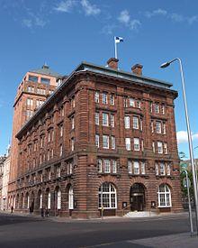 Dundee is one of 32 council areas of Scotland,[51] and is represented by the Dundee City Council – a local council composed of 29 elected councillors. Previously the city was a county of a city and later a district of the Tayside region. Council meetings take place in the City Chambers, which opened in 1933 in City Square. The civic head and chair of the council is known as the Lord Provost, a position similar to that of mayor in other cities. The political head of the council is known as the Leader of the council or Leader of the Administration. The Leader chairs the Policy & Resources Committee. Dundee House, the new headquarters for the city council on North Lindsay Street, opened in August 2011.[53] This has replaced Tayside House which was demolished in 2013 as part of the Dundee Waterfront improvements.[53][54]