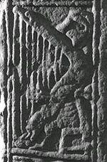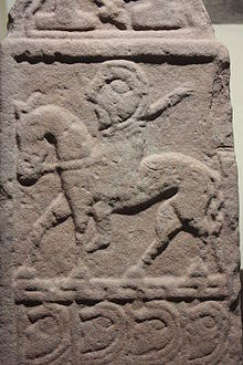 Other carved themes on the cross include a rider with an oversized head and ponytail showing him to be a man of authority. On the obverse a man fights bears with his bare hands. The sides include a man (probably David) playing a harp, and hunting dogs.