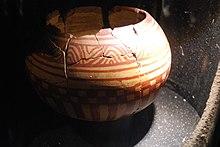 The most widespread and developed handcraft in the state is pottery, found in just about all of the territory. All of the indigenous groups produce pottery, almost all for utilitarian and ceremonial purposes.[16] There is more modern and varied pottery and ceramics in southern Durango, especially in and around the state capital in the municipalities of Durango, Poanas and Villa Union. Common products include flower pots, jars, pots and cazuelas (large cooking vessels).[22] The most decorative pottery is found in and around the city proper, with techniques such as pastillaje (laying small rolls or balls of clay over a pot before firing to make a raised design) and sgraffito, especially in the newer generations of pottery. Pottery production is still done by hand, often using crude wheels and local deposits of clay. The clays vary by region including the kaolin found in Peñon Blanco and Cuencamé. Those found in the Guadiana Valley produce cream tones. Green, red and white clays are found all over the state depending on the other minerals found in the soil of the area.[16]