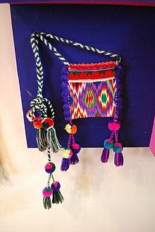 Indigenous crafts include embroidered clothing, household utensils, farm tools and ceremonial objects. The Huichols are noted for the making of sombreros, carrying bags, and items adorned with beads. They also make some items with wood and clay. Huichol handcrafts are distinguished by the use of symbols from their cosmology and include pottery, embroidery, yarn paintings and beadwork. The Tepehuans make bows and arrows, sombreros, traditional clothing and baskets. The Tarahumara make bows and stone-tipped arrows, ceramics, flutes and drums. The Mexicaneros and Southern Tepehuanos are noted for the making of morrales (carrying bags) with geometric designs. The Tarahumara and Northern Tepehuanes are noted for baskets made with pine strips, as well as those made from palm fronds and cane.[16][22]
