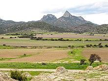 The Valleys are located in the center of the state and include the municipalities of Nombre de Dios, Durango, Nuevo Ideal, Canatlán, Guadalupe Victoria, Pánuco de Coronado, Poanas, Súchil, Vicente Guerrero, Ocampo, San Bernardo, Indé, Coneto de Comonfort, El Oro, Rodeo, San Juan del Río and Peñón Blanco. The region consists principally of river valleys and plains located among small mountain ranges. The main peaks in this area include the San Jacinto in the Silla Mountains and Peñon Blanco, which many schoolchildren in the area take trips to. Other major geographical formations in the Valleys Region include cliffs called Las Catedrales, along with those called Malpaís and La Breña, which were formed by lava flows over 250,000 hectares. The area is also home to the Cerro de Mercado which is important for its large deposit of iron.[9][16]