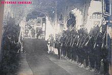 The practice was started with Lord Lytton's Proclamation Durbar of 1877 celebrating the proclamation of Queen Victoria as the first Empress of India.[1] Durbars continued to be held in later years, with increased ceremony and grandeur than their predecessors. In 1903, for instance, the Coronation Durbar was held in Delhi to celebrate the accession of Edward VII to the British throne and title of Emperor of India. This ceremony was presided over by the Viceroy of India, Lord Curzon.[3]