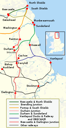 - ^ a b c Line Diagrams of the North Eastern Railway: Stockton - Hartlepool - Sunderland - Newcastle. North Eastern Railway Association. 2008. p. 1. ISBN 9781873513682.