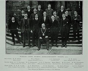 - ^ "Durham Union Society: Visitors' Night". Durham University Journal. Durham University. 20: 201. 5 June 1912. Retrieved 21 July 2019.