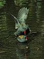 The moorhens frequently flick their conspicuous white and black tail. This may be a signal of alertness or of social status, depending on the context.[6][8]