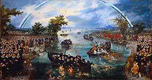 Under the terms of the surrender of Antwerp in 1585, the Protestant population (if unwilling to reconvert) were given four years to settle their affairs before leaving the city and Habsburg territory.[2] Similar arrangements were made in other places. Protestants were especially well-represented among the skilled craftsmen and rich merchants of the port cities of Bruges, Ghent, and Antwerp. More moved to the north between 1585 and 1630 than Catholics moved in the other direction, although there were also many of these. Many of those moving north settled in Amsterdam, transforming what was a small port into one of the most important ports and commercial centres in the world by 1630.