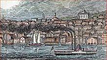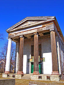 The Dutch Reformed Church is one of the most prominent architectural landmarks in Newburgh, New York. It was designed by Alexander Jackson Davis in 1835 in the Greek Revival style. It is his only surviving church in that style and is considered to be his latest building still standing that largely reflects his original vision.[3] The church stands at 132 Grand Street, just north of the Newburgh Free Library.