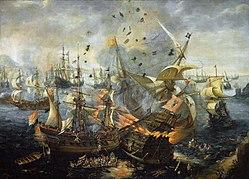 In 1639, Spain sent an armada bound for Flanders, carrying 20,000 troops, to assist in a last large-scale attempt to defeat the northern rebels. The armada was decisively defeated by Lieutenant-Admiral Maarten Tromp in the Battle of the Downs. This victory had historic consequences far beyond the Eighty Years' War as it marked the end of Spain as the dominant sea power.