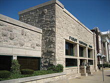The Dwight Veterans' Administration Hospital occupied the triangular-shaped block between Main Street, Mazon Avenue, and Prairie Avenue. Part of the facility was built in 1891 for the Keeley Institute.[36] In 1930 it became the Dwight V.A. Hospital, and an addition opened on May 11, 1947, with a modern surgical suite, wards, clinic, and physical therapy facilities.[37] The buildings survive and are partially occupied by the Fox Developmental Center.