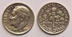| Obverse: Portrait of Franklin D. Roosevelt, year and US national motto (In God We Trust) | Reverse: E pluribus unum, olive branch, torch and oak branch, face-value and country. |