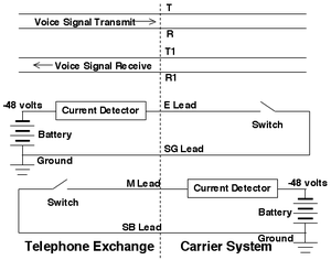 Type I is the most common standard in North America and Japan, and signals an outgoing call from the PBX to the signaling unit with Battery on the M ("Mouth") lead. Incoming calls from the CO are signaled by an earth (ground) signal on the E ("Ear") lead. The interface is vulnerable to poor earthing at either end, and interference from external electrical noise which act on inferior voice signal quality. [1]