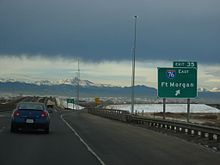 | Brighton | 35.491 | 57.117 | 35 | Northbound exit to eastbound I-76 and southbound entrance from westbound I-76, exit 18. | ||
