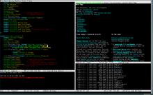 Emacs /ˈmæks/ or EMACS (Editor MACroS)[3][4][5] is a family of text editors that are characterized by their extensibility.[6] The manual for the most widely used variant,[7] GNU Emacs, describes it as "the extensible, customizable, self-documenting, real-time display editor".[8] Development of the first Emacs began in the mid-1970s, and work on its direct descendant, GNU Emacs, continues actively as of 2020.