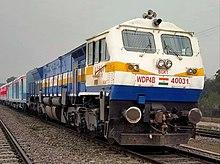 The EMD GT46PAC or WDP4 is a passenger-hauling diesel-electric locomotive with AC electric transmission designed by General Motors Electro-Motive Division and built by both GM-EMD and under license by Banaras Locomotive Works (BLW) of Varanasi, India for Indian Railways as the classes WDP4, WDP4B and WDP4D.[1] The GT46PAC is a passenger version of the previous Indian Railways EMD GT46MAC freight locomotive. The locomotive has a 16-cylinder 710G3B diesel engine and is one of the fastest diesel-electric locomotives in service in Indian Railways.[2]