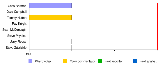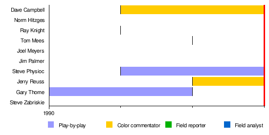 - Gary Thorne: play-by-play (1990–1993), (1996–2000), (2003-2009) select games