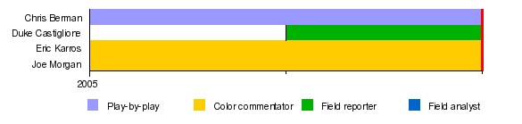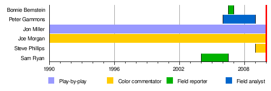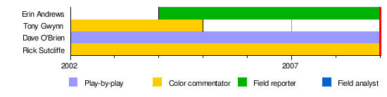 - Bonnie Bernstein: field reporter (2006) Sunday Night Baseball, (2007–2008) Wednesday Night Baseball