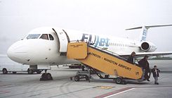EUjet was a low-cost airline based at Shannon Airport, Ireland. It operated a network of services from its main base at Shannon Airport (SNN), with a hub at Kent International Airport (MSE), Manston, Kent, UK. The airline was sold to a British company, PlaneStation, which also owned Kent airport, for €10m. In July 2005, PlaneStation went out of business with €40m in debts, forcing EUjet to cease operations.