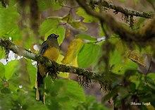 Eaglenest Wildlife Sanctuary is well known as a major birding area.[3] It is home to at least 454 species of birds including 3 cormorants, 5 herons, black stork, Oriental white (black-headed) ibis, 4 ducks, 20 hawks, eagles, kites, harriers and vultures, 3 falcons, 10 pheasants, junglefowl, quail, and peafowl, black-necked crane, 3 rails, 6 plovers, dotterels, and lapwings, 7 waders, ibisbill, stone-curlew (Eurasian thick-knee), small pratincole, 2 gulls, 14 pigeons, 3 parrots, 15 cukoos, 10 owls, 2 nightjars, 4 swifts, 2 trogons, 7 kingfishers, 2 bee-eaters, 2 rollers, hoopoes, 4 hornbills, 6 barbets, 14 woodpeckers, 2 broadbills, 2 pittas, 2 larks, 6 martins, 7 wagtails, 9 shrikes, 9 bulbuls, 4 fairy-bluebirds, 3 shrike, brown dipper, 3 accentors, 46 thrushes, 65 Old World flycatchers, 6 parrotbills, 31 warblers, 25 flycatchers, 10 tits, 5 nuthatches, 3 treecreepers, 5 flowerpeckers, 8 sunbirds, Indian white-eye, 3 bunting, 14 finches, 2 munia, 3 sparrows, 5 starlings, 2 orioles, 7 drongos, ashy woodswallow and 9 jays.[7] The sanctuary has the distinction of having three tragopan species, perhaps unique in India.[8]