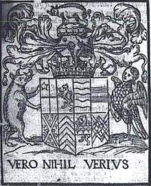 Soon after his father's death in 1141, Aubrey III de Vere was recruited by Empress Matilda. Aubrey's brother-in-law, Geoffrey de Mandeville first earl of Essex, apparently negotiated the offer of the earldom of Cambridge, with a secondary offer of one of four counties if Cambridgeshire was claimed by her kinsman. Aubrey held no land in Oxfordshire at the time, but his eldest son Aubrey IV was to marry an heiress with manors in that county. Aubrey IV was supposedly an ally of King John, while his brother Robert, the 3rd Earl was one of the 25 barons of Magna Carta. His descendant, another Robert, the 9th Earl, was a favourite of King Richard II who created him Duke of Ireland. John the 13th Earl was a Lancastrian during the War of the Roses and Henry Tudor's commander at the Battle of Bosworth Field in 1485.[1] The 17th Earl has become the most famous of the line because of his emergence as a popular alternative candidate as the actual author of the works of William Shakespeare (see Oxfordian theory of Shakespeare authorship). The 17th Earl was a ward and later son-in-law of Lord Burghley, Queen Elizabeth I's Secretary of State. On the death of the 20th Earl, without identifiable heirs male, the title became dormant.