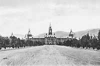 At the time of his arrest, Nelson was wanted in six U.S. cities, and was held to be tried in a Manitoba court for the murders of both Cowan and Patterson.[29] He was also charged with two counts of attempted molestation, and one count of burglary.[84] Nelson's trial was scheduled to begin June 27, 1927, but postponed at the request of his attorney,[85] and instead began on November 1, at the Winnipeg Courts Law Building.[79][86] The case was prosecuted by R. B. Graham,[87] and overseen by Justice Andrew Dysart.[88]