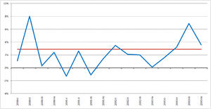 France and Germany both entered recession towards the end of 2001, but in May 2002 both countries declared that their recessions had ended after a mere six months each. Both economies suffered from global tech crash with the ruling German party introducing the then unpopular austerity, tax cuts and labor reforms nicknamed Hartz concept to boost the German economy in wake of an economic slump that would persist until the mid-2000s with unemployment peaking in early 2005 of 12.7%.[10] However, some European Union countries – including the United Kingdom – managed to delay sliding into recession until the late 2000s.[11]