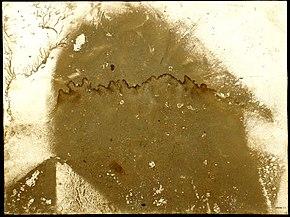 Museum paper board left on the bank of the river for 4 days. By Jacek Tylicki, S.W. of Lund, Sweden, 473 X 354 mm. 1981