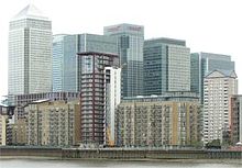 The closure of the last of the East End docks in the Port of London in 1980 created further challenges and led to attempts at regeneration and the formation of the London Docklands Development Corporation. The Canary Wharf development, improved infrastructure, and the Olympic Park[6] mean that the East End is undergoing further change, but some parts continue to contain some of the worst poverty in Britain.[7]