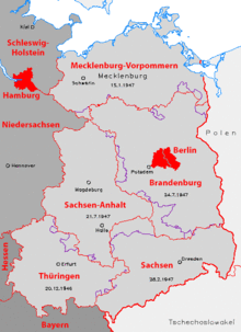 In the Soviet occupation zone, five Länder were established which roughly corresponded to the preexisting states and provinces. (The territories east of the Oder–Neisse line had been transferred from the Soviet occupation zone to the Polish authorities as agreed upon at the Potsdam Conference.) The five states were: