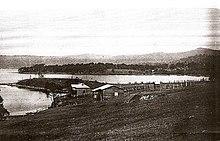 Located on the eastern border of East Gosford is Erina Creek. Originally the creek provided access to the many ketches and steamers which came in and out on timber business. A man operating a punt carried people and their goods across Erina Creek. In 1884 the Government called tenders for the construction of an iron drawbridge with timber approaches. On 15 September, the tender of John Johnstone was accepted and work began. The bridge was completed in 1886, probably early in the year, at a cost of £3,695/15/-, which was considerably more than the average cost of £500 for country bridges. Part of the bridge rolled back towards the Gosford side by means of wheels guided on rails. This was achieved by men cranking the mechanism by hand. The bridge was opened seven times a day. The last of the steamers to go through was the Lone Pine in 1928.[7] The old Punt Bridge, as it was called, was replaced by a modern bridge built by Beattie and Frost Pty Ltd of Gosford in 1962.[8] It is still known as The Punt Bridge and forms part of the Central Coast Highway.